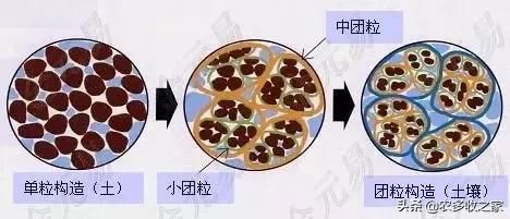 土壤的一个物理结构叫做“土壤团粒结构”,即土壤是由一个小团一个小团构成的,形象来说就像蚯蚓粪一样。好的土壤团粒结构既通气,又保水保肥,而且还有抗旱的作用。但是土壤团粒结构特别不稳定,容易受到外界环境,包括人为的破坏。比如,浇水次数过勤、浇水过多,或者施用未腐熟的有机肥、喷洒某些化学杀菌剂,尤其是除草剂,都会破坏土壤团粒结构。如果团粒结构受到破坏,构成它的小分子团就不存在了,土就成了面儿状的,堆积到一块,就容易造成土壤的板结。很多农民以为土壤板结就是单纯的土壤变硬了,实际上是因为土壤物理结构遭到了破坏,才造成了板结。
